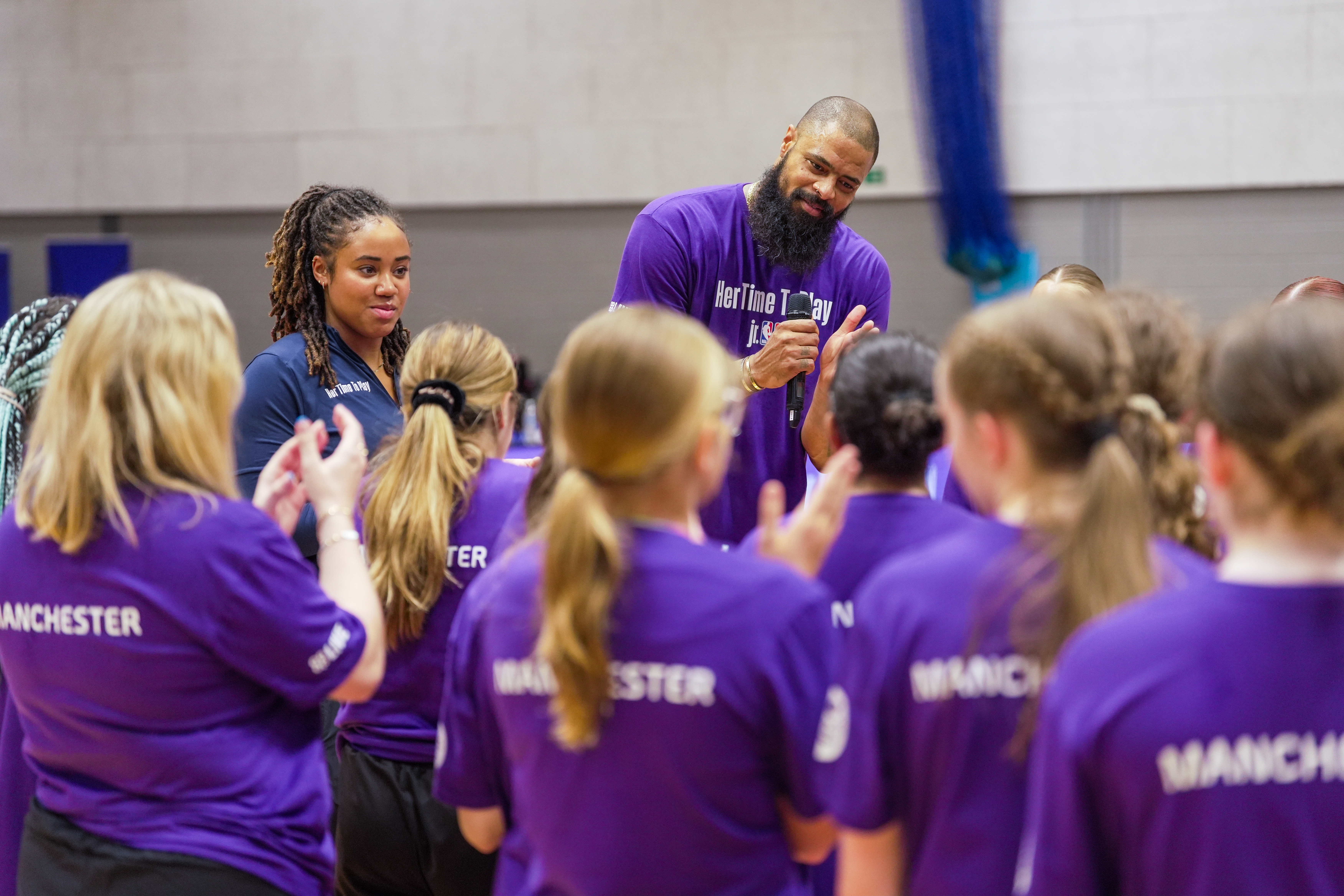 This time around, the 7-footer was at the National Basketball Performance Centre and on hand to offer guidance to 60 of Europe’s brightest ballers, as well as to local grassroots players attending Her Time To Play and Jr. NBA clinics.